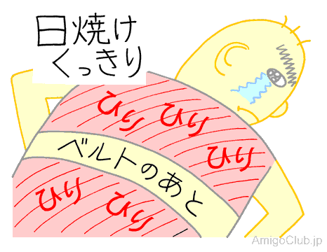 ベルトのあとがクッキリ。思いがけないお土産が出来ちゃった。