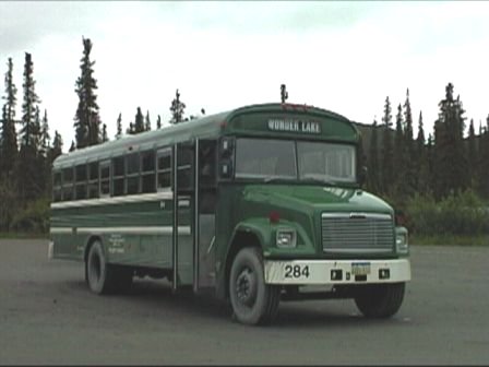 普通のスクールバス(黄色)を緑色に塗っただけだね。