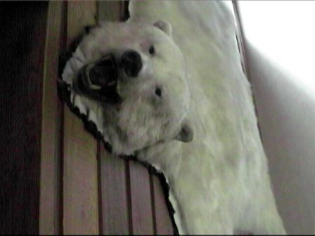 これまたデカイ白くまの毛皮。なんと壁に貼り付けてある。