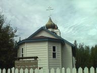 グレンハイウェイを北へ走り、エクルートナへ。ロシア正教会とお家型のお墓で有名なところだ。30分後、到着したが、私達がキリスト教徒ではないこと、お墓を写真に撮ることへの抵抗があって、中には入らなかった。でもロシア式の横3本十字架が見られてよかった。