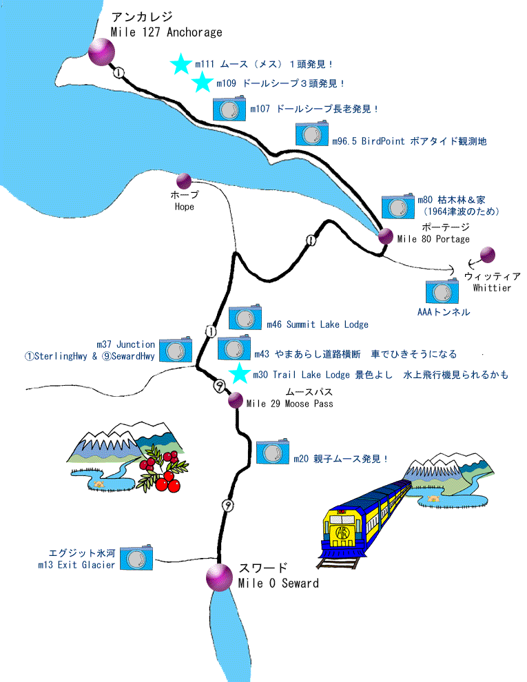 アンカレジ⇔スワード間を結ぶ全長127マイル(204km)。