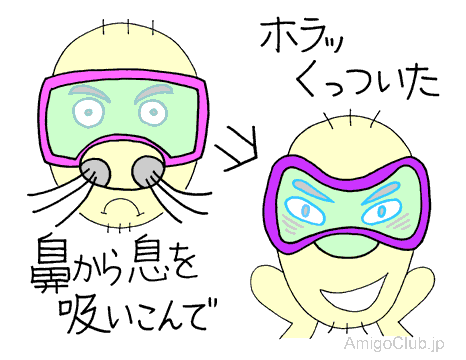 顔にくっつかずにポロッと取れてしまう。う〜ん、イライラするぜ。