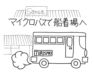 空港から船着場まで、マイクロバスでトコトコ走る。庶民の生活をかいま見る、貴重な時間。