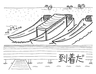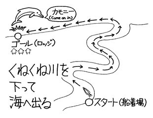 ボートに乗り込んで川を下り、いよいよ海へ。この日の海はとても穏やかだった。