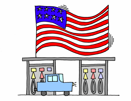 ガソリンスタンドには、いつも特大の国旗。
