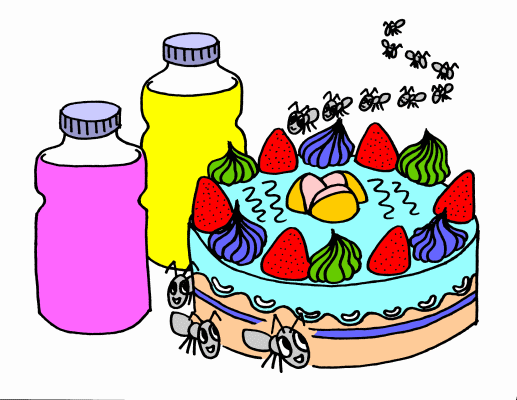 緑色や青色のケーキ。マッ黄色やドピンクのジュース。