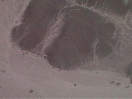山の斜面に宇宙人。右手を挙げてコンニチハ。
