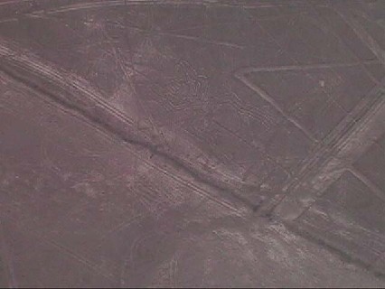 写真左から右へ走る斜め線の上に、クモ。見える?