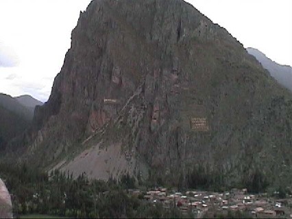 遺跡の真向かいに座る山。山の真ん中ほどに、人の顔をした岩がある。