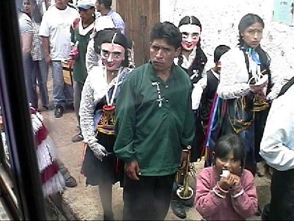 おじさんの後ろには、またまた不思議な人。女の子のお面を被っている。