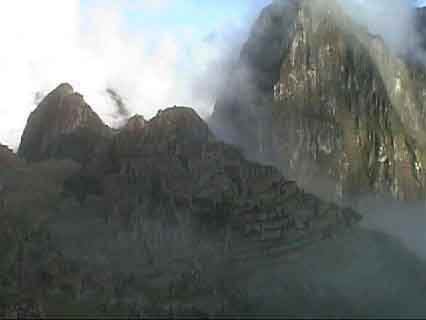 遺跡に朝日が照る前。薄い雲が街を覆っている。