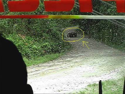 落石(石というより岩)が道をふさいでいる。バスを直撃しなくてよかった。