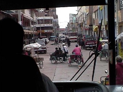 フリアカのダウンタウン。タクシーチョロが我が物顔に行き交う。