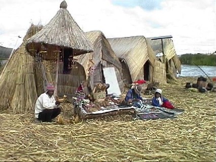 ウロス島での貴重な現金収入源、お土産販売。もうかりまっか?