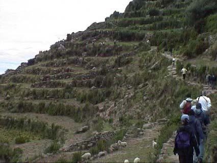 長いながい坂道を登る。足元は大きな石を敷き詰めた道。