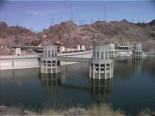 フーバーダム"Hoover Dam"*** Larry ***ラスベガスの中心部を無視して、グランドキャニオンへ向かう。1時間もしないうちにフーバーダムに到着だ。アメリカのダムってとっても小さいのね。有名なダムにしては、とっても普通のダムだ。やはり日本のダムの技術がすごいのね。 *** Miki *** 車でゆっくりとダムの上を通った。湖にはボートやカヌーがたくさん。アメリカ人は遊び上手ね。