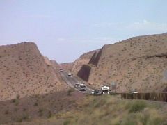 グランドキャニオン"Grand Canyon"へ*** Larry ***フーバーダムから30分ほどドライブすると、砂山を無理やり削ぎ落としたような道が続く。とっても面白い。しかし、それからが長い道のりだった。風景の変化がない平凡な道がひたすらつづく。とっても退屈なドライブだ。ようやくグランドキャニオンに到着し、ブライトエンジェルトレイルに向かう。始めてグランドキャニオンを見た感想は「わぁーーー」。すごいとしか言いようがない。 *** Miki *** 5時間ドライブの末、ようやく辿り付いた。途中、道端に野生の鹿を発見!一心に草を食んでいた。渓谷を見た最初の一言は「すご〜い。。。」。これ以上は続かなかった。圧倒されすぎ。