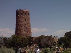 デザート・ビュー"Desert View"(東の端)*** Larry ***グランドキャニオン内で日中に見た風景の中では一番見ごたえがある。他とは全く違った地形が見られる。 ここにたどり着くまでにいろいろなビュー・ポイントに止まったが、あまり「これだっ」っていうところはなかった。 それでも、時間を費やしてもくる価値はあるぞー。 *** Miki *** とてもパノラマチック。谷底を流れるコロラド川もクッキリ。崖と砂漠の対比が面白かった。 ここでも日本人団体客に会った。アクティブなじいちゃんばあちゃん達。楽しそうでなにより。
